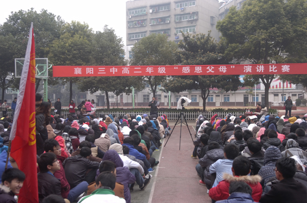 “父母之恩,水不能溺,火不能滅”。感恩節(jié)即臨,襄陽三中高二年級于11月20日下午組織學(xué)生,開展以“感恩父母”為主題的演講比賽。天氣似乎在考驗高二全體師生的意志和誠意,和著習(xí)習(xí)寒風(fēng),飄起了絲絲細雨。但全體師生仍然安守秩序,聆聽著18位選手激情澎湃的演講,會場上不時爆發(fā)出雷鳴般的掌聲。經(jīng)過激烈的比賽,17班季寧悅,1班張夢蝶,6班王春煜獲得一等獎,15班李爽健,11班木榮,16班孫援,5班王旭東,3班鄒潔,18班劉靜獲得二等獎,13班杜雙婧,2班陳高雁,14班李鴻鵠,8班陳潔,12班徐雨帆,9班趙錦琳,10班劉燚,4班操凌寒,7班劉谷雨獲得三等獎。