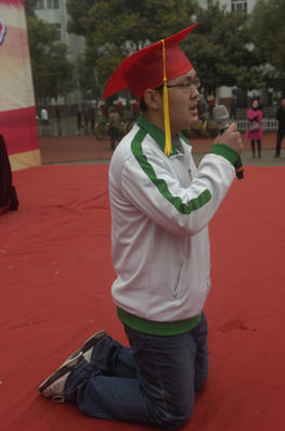 學(xué)校領(lǐng)導(dǎo)給學(xué)生發(fā)蛋糕