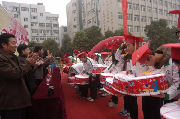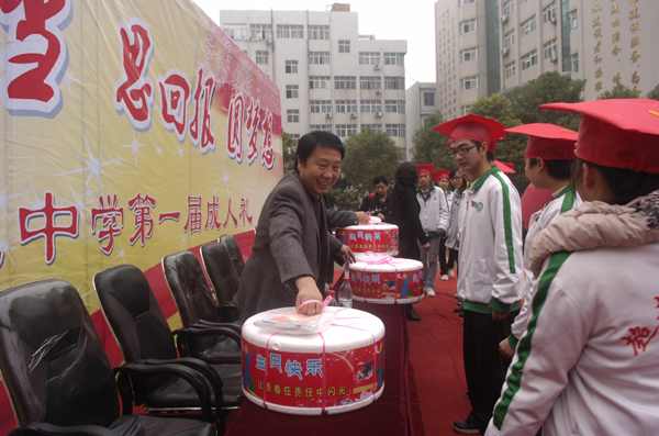 教育局領(lǐng)導(dǎo)給學(xué)生發(fā)蛋糕