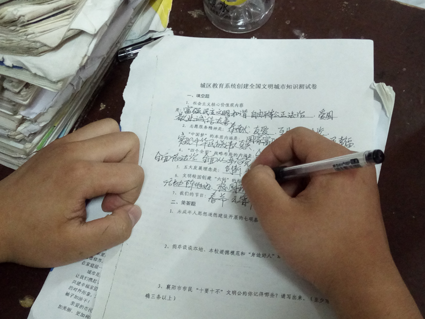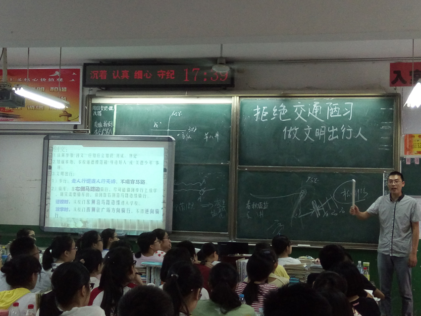2017年5月28日下午,為了創(chuàng)建文明城市、爭(zhēng)創(chuàng)文明校園,襄陽(yáng)三中積極響應(yīng)市教育局有關(guān)倡議,統(tǒng)一召開(kāi)“拒絕交通陋習(xí) 做文明出行人”班會(huì),學(xué)習(xí)《市委書(shū)記李樂(lè)成、市長(zhǎng)秦軍致全體市民的一封信》、《市教育局對(duì)全市中小學(xué)生文明出行的倡議》和學(xué)校關(guān)于“創(chuàng)文”的布置要求。學(xué)校印發(fā)了《教育系統(tǒng)創(chuàng)文知識(shí)測(cè)試卷》,要求全校師生認(rèn)真作答,加深對(duì)“創(chuàng)文”知識(shí)的了解和加強(qiáng)文明行為的養(yǎng)成。