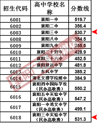 二、2017年襄陽市區(qū)除四中五中外其他普通高中統(tǒng)招錄取投檔分?jǐn)?shù)線一覽表