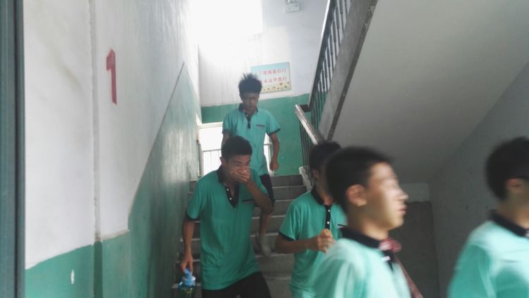 可能是因?yàn)橛欣蠋熀徒坦俚闹笓]吧,男生們下樓太淡定了!