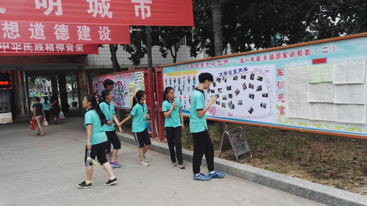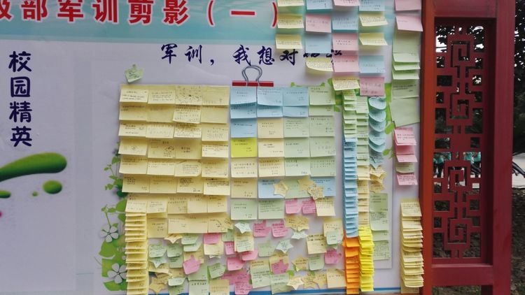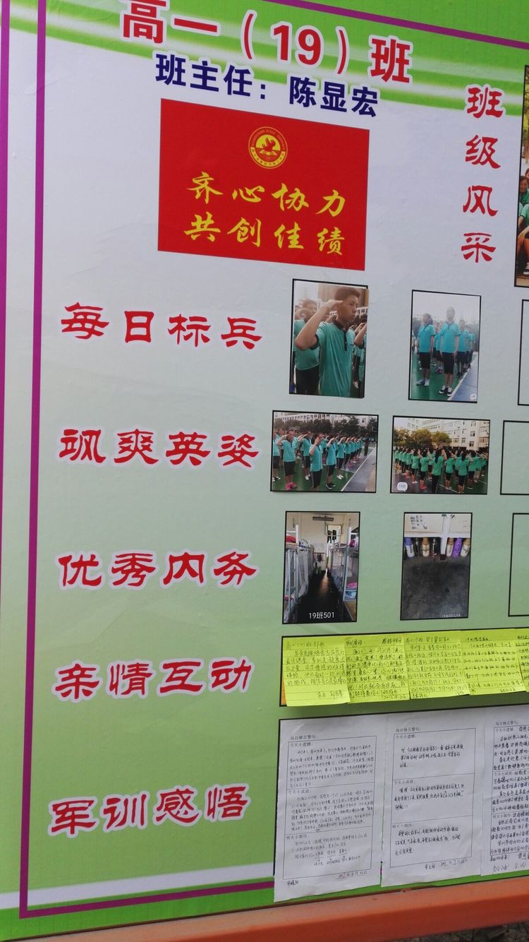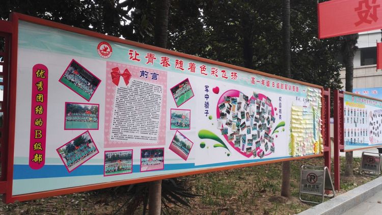 嚴(yán)明的紀(jì)律,離不開濃濃的溫情。級(jí)部的軍訓(xùn)展板成為校園里一道靚麗的風(fēng)景線。