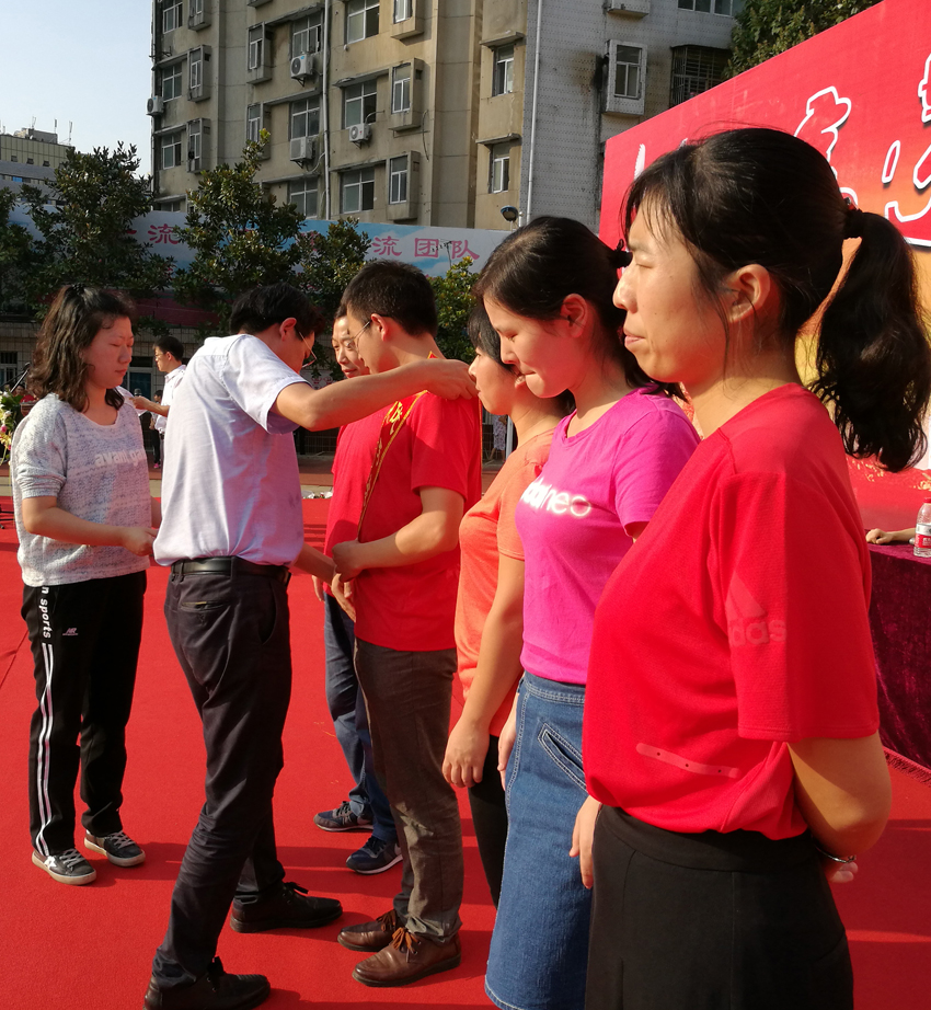 學(xué)校領(lǐng)導(dǎo)給先進(jìn)團(tuán)隊(duì)和個(gè)人佩戴綬帶,頒發(fā)獲獎(jiǎng)證書(shū)