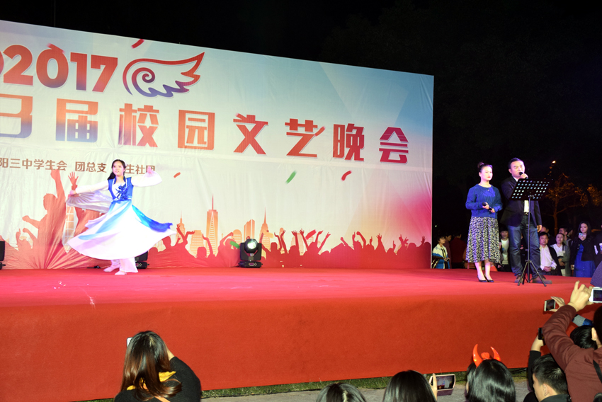 10月26日晚,體藝節(jié)的重頭戲文藝晚會(huì)上演。專(zhuān)業(yè)的舞臺(tái),炫麗的燈光,震憾的音響......鋪就了三中的“星光大道”,晚會(huì)成了咱三中的“春晚”。師生同臺(tái)表演,校友傾情客串,節(jié)目豐富多采,晚會(huì)高潮迭起。這是一次才藝與智慧的展示,舞動(dòng)青春,放飛夢(mèng)想。這是一次歡樂(lè)與激情的碰撞,活力四射,神采飛揚(yáng)。
