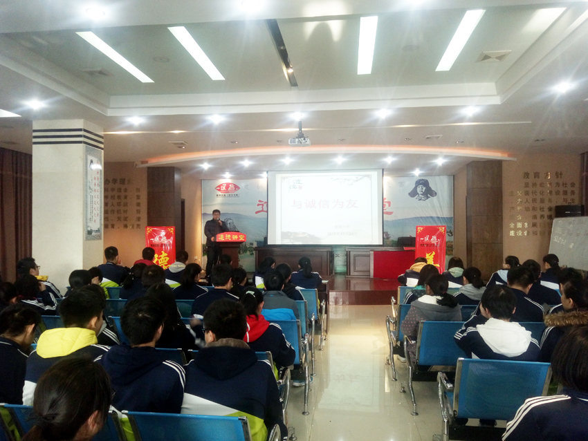 2017年11月24日下午,襄陽三中道德講堂在學(xué)校道德講堂活動(dòng)室開講,本期道德講堂的主題是“與誠(chéng)信為友”,主講人為高一(6)班班主任陳睿老師,整個(gè)活動(dòng)內(nèi)容豐富、環(huán)節(jié)完備。誠(chéng)信是做人的一種品質(zhì),是為人處世之本,是為人之德的核心。它不僅是中華民族的傳統(tǒng)美德,也是現(xiàn)代文明的基石,是處理人與人、人與社會(huì)之間的基礎(chǔ)性道德規(guī)范,陳睿老師希望通過本次道德講堂,教育每一位學(xué)生都能重信用、守承諾、講信譽(yù),忠誠(chéng)老實(shí),誠(chéng)懇待人,以信用取信于人。