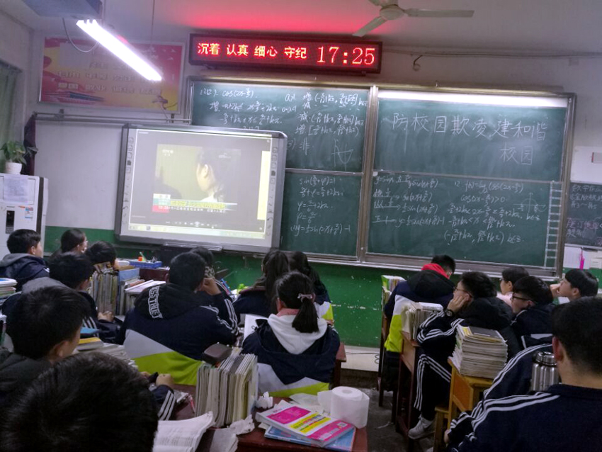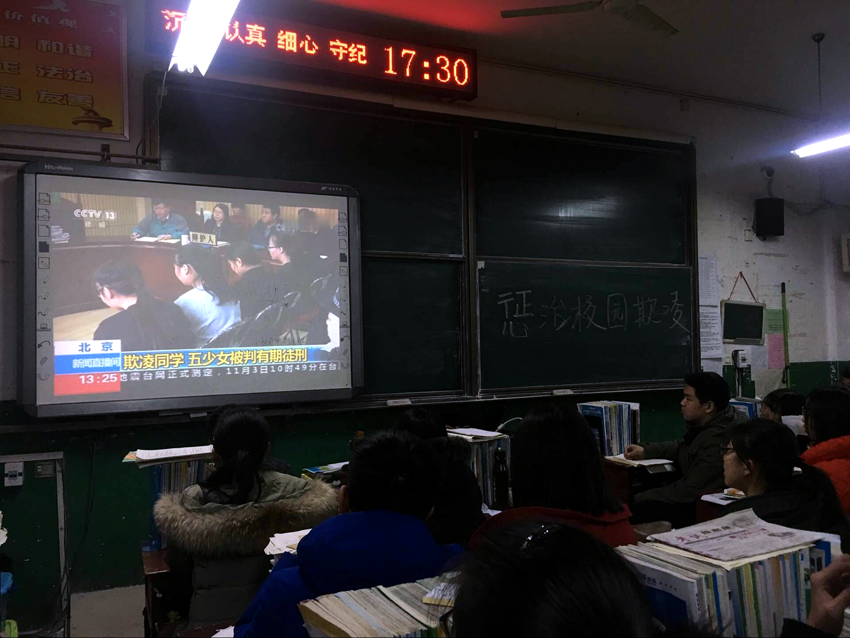 2017年12月24日,我校開展以“防校園欺凌,建和諧校園”為主題的班會,活動內(nèi)容主要有:觀看央視視頻“懲治校園欺凌”,學生討論發(fā)言和班主任點評總結(jié)等。近年來,各地頻發(fā)校園暴力和欺凌事件,為貫徹執(zhí)行國家《關(guān)于開展校園欺凌專項治理的通知》的文件精神,促進學生身心健康,建設平安和諧校園,我校制定了防校園欺凌專項整治方案,建立了校園欺凌的預防和處理制度、措施,并積極開展宣傳教育活動,讓廣大學生珍愛同學友誼,遠離校園欺凌,明白校園欺凌帶來的嚴重法律后果。