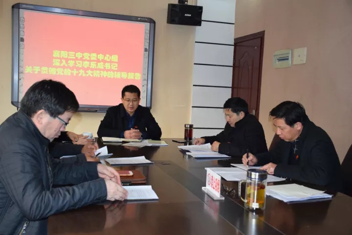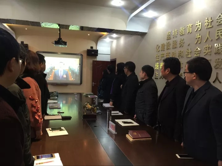 2017年,舉世矚目、舉國(guó)歡慶的黨的十九大勝利召開,我校立即掀起學(xué)習(xí)黨的十九大精神的熱潮。學(xué)校黨委組織黨員和老師收看黨的十九大開、閉幕式和習(xí)近平的報(bào)告,優(yōu)秀講師進(jìn)支部實(shí)現(xiàn)全覆蓋,成立講習(xí)所,每月召開一次黨委中心組、全體干部會(huì)集中學(xué)習(xí),為每個(gè)黨員購(gòu)買黨的十九大報(bào)告單行本和新黨章,供黨員自學(xué),利用支部主題黨日活動(dòng)集中學(xué)習(xí),全校老師抄黨的十九大報(bào)告筆記,進(jìn)行檢查并通報(bào),舉辦喜迎黨的十九大學(xué)生詩歌朗誦會(huì)、班會(huì)、知識(shí)競(jìng)賽等。