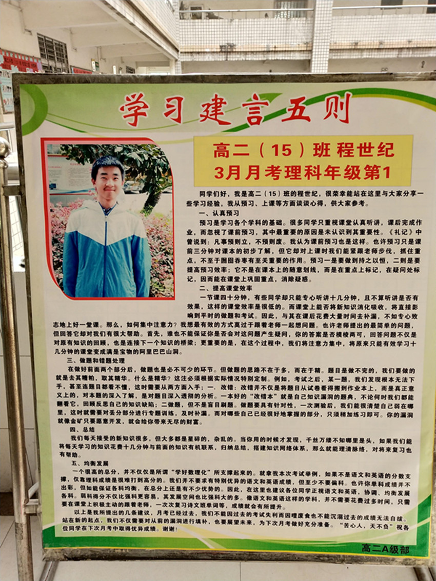 大家好!我是高二(15)班的程世紀(jì),很榮幸能站在這里與大家分享些學(xué)習(xí)經(jīng)驗,我從預(yù)習(xí)、上課等方面談?wù)勑牡茫┐蠹覅⒖肌?/span>