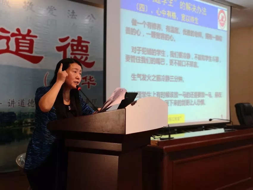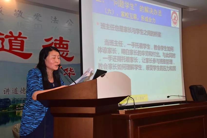 襄陽(yáng)三中“彭紅偉名班主任工作室”主持人彭老師擔(dān)任主講。她以“問(wèn)題學(xué)生的溝通和教育”為主題,結(jié)合自身實(shí)踐,著重從7個(gè)方面闡述了“問(wèn)題學(xué)生”的教育和轉(zhuǎn)化辦法:一是引領(lǐng)思想,提高認(rèn)識(shí);二是細(xì)心調(diào)查,存檔跟蹤;三是寬嚴(yán)有度,防微杜漸;四是心中有格,寬以待生;五是陽(yáng)光雨露,溫暖育人;六是家?;ヂ?lián),形成合力;七是尊重關(guān)心,正面疏導(dǎo)。彭紅偉老師有著三十余年豐富的班主任工作經(jīng)歷,她用細(xì)膩的情感和名班主任的睿智來(lái)管理班級(jí),被學(xué)生親切地稱(chēng)為“班媽”。彭老師歷年所帶班級(jí)班風(fēng)正,學(xué)風(fēng)濃,成績(jī)?cè)谕?lèi)型班級(jí)中名列前茅。彭老師用大量親身經(jīng)歷的案例,使整臺(tái)講座妙趣橫生。在場(chǎng)的老師們聽(tīng)得津津有味,普遍感到受益匪淺,上了一節(jié)很好的班主任工作培訓(xùn)課。“不放棄任何一個(gè)學(xué)生,用愛(ài)和寬容去溫暖每個(gè)學(xué)生的心田”,彭紅偉老師最后的真誠(chéng)共勉,贏(yíng)得了在場(chǎng)全體老師熱烈的掌聲。