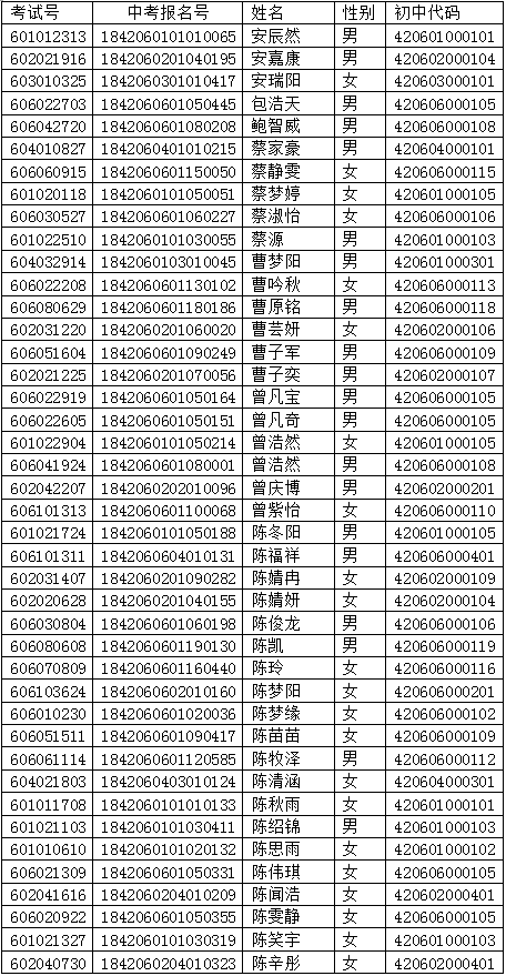 為了方便您查找,考生以姓氏拼音排序。