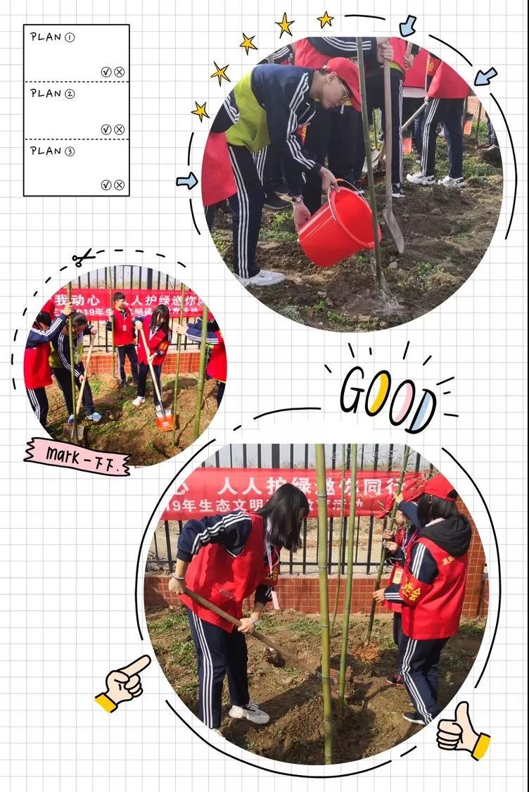 把一棵棵小樹苗根植于土壤,這是對生態(tài)文明的實際踐行。我們種下的每棵樹,都為生態(tài)文明建設(shè)貢獻了一份力量。不積跬步無以至千里,不集細流無已成江河,人人關(guān)注生態(tài)文明,個個爭當綠色使者,愿我們的天更藍、山更綠、水更清、校園更美麗、環(huán)境更美好 !