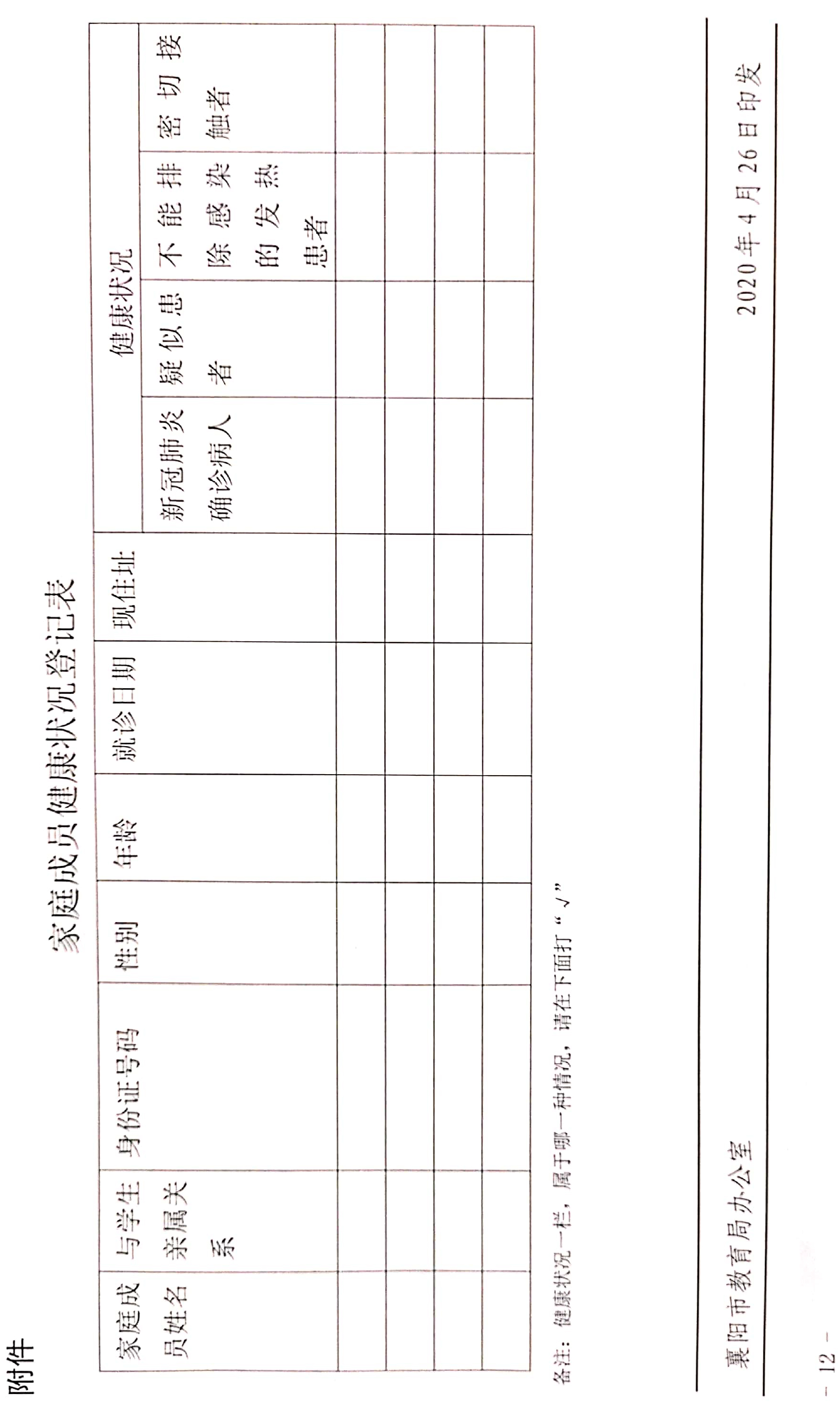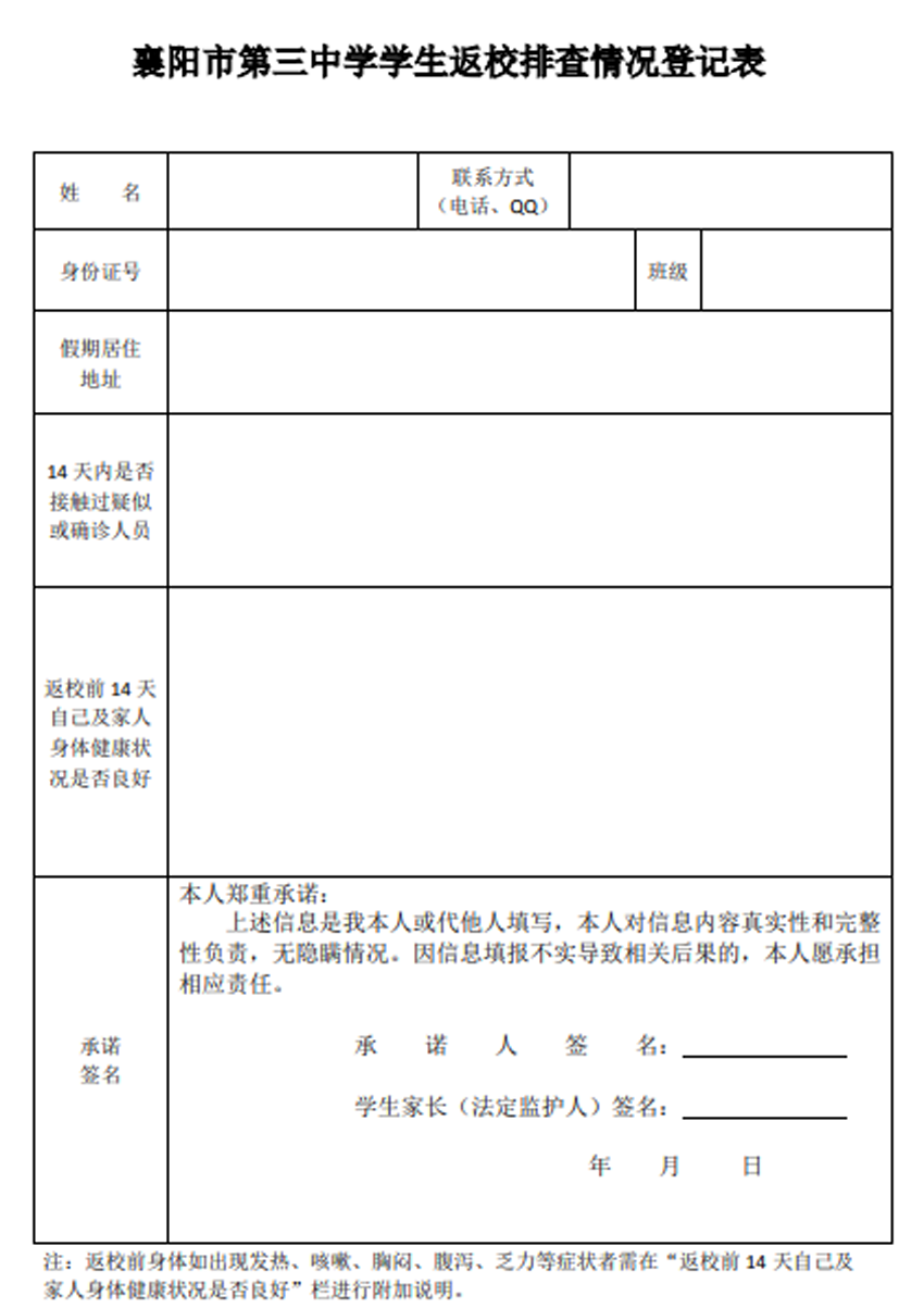 1.《襄陽市第三中學(xué)師生返校排查情況登記表》